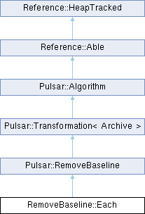 Detailed DescriptionFind the baseline from each total intensity profile. This algorithm does not assume anything about the timing model or the dispersion measure. The baseline is separately determined for each sub-integration and frequency channel. Member Function Documentation◆ transform()